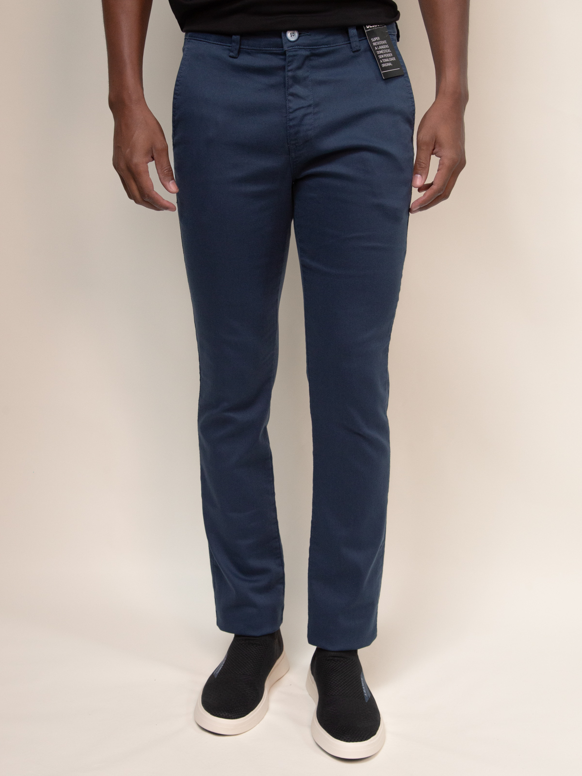 CALÇA SARJA ANDREWS BOLSO FACA VILLE DE FRANCE AZUL PETRÓLEO