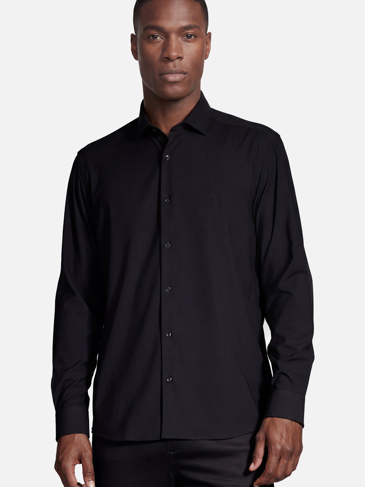 CAMISA ARAMIS MANGA LONGA SLIM POLIVISCOSE DE BAMBU COM STRETCH PRETO
