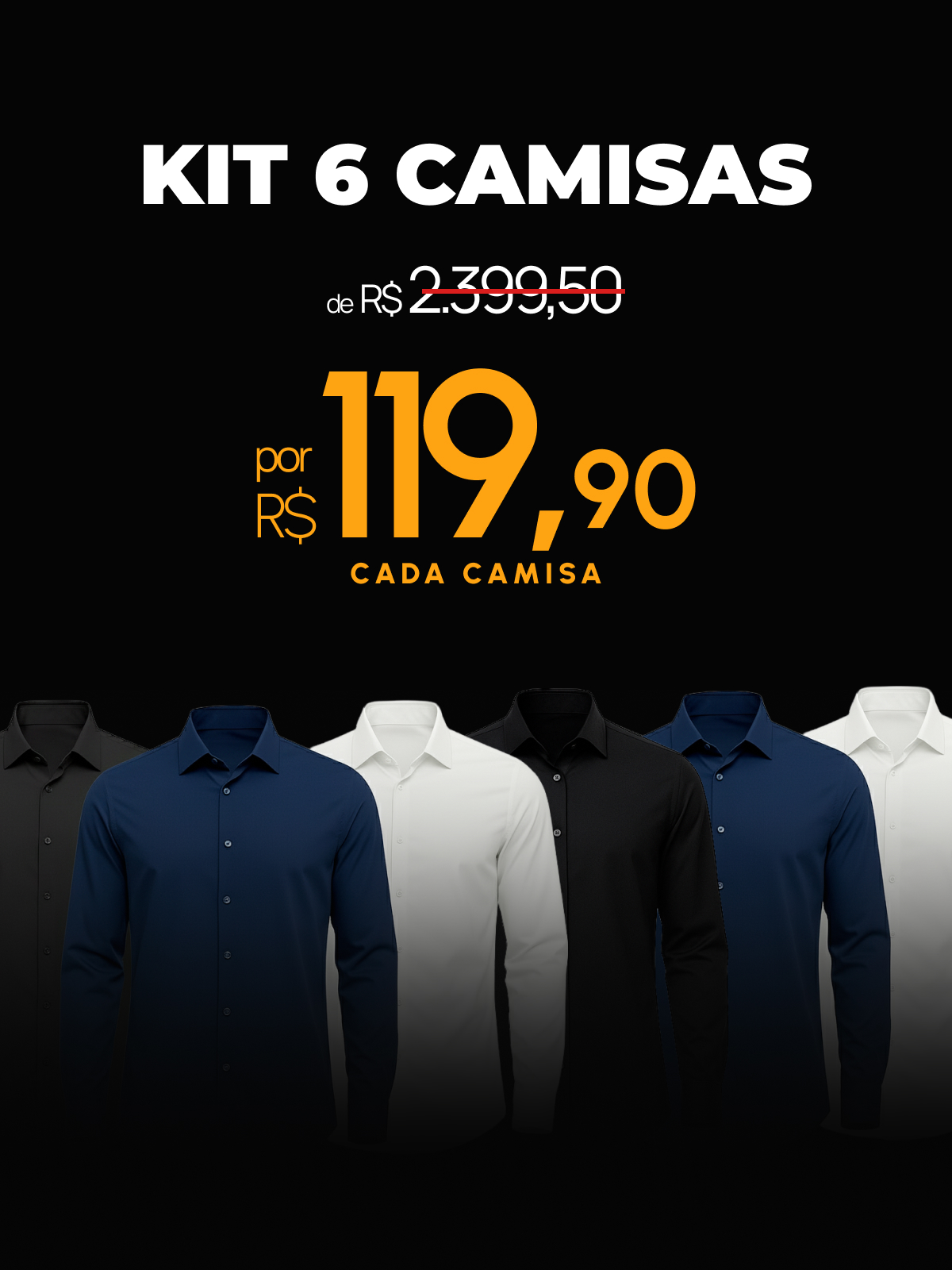 O Kit 6 Camisas Soft Tech Slim combina tecnologia, conforto e estilo em dose dupla. Confeccionadas em tecido de alta performance (96% poliéster e 4% elastano), as camisas oferecem toque macio, elasticidade e caimento perfeito ao corpo, garantindo liberdade de movimento e um visual moderno. Possuem modelagem slim, gola clássica e acabamento liso sem bordado, ideais para quem busca elegância e praticidade no dia a dia.