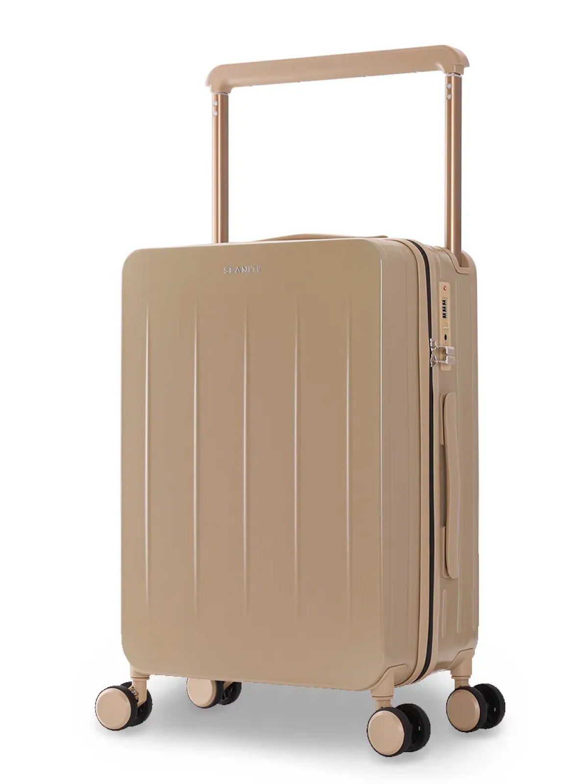 A Mala de Bordo 20" Singapura Seanite é confeccionada em 80% ABS e 20% policarbonato, oferecendo resistência, leveza e durabilidade. Possui acabamento bege sofisticado, carrinho de metal embutido com 3 níveis de expansão e botão de trava para ajuste prático.