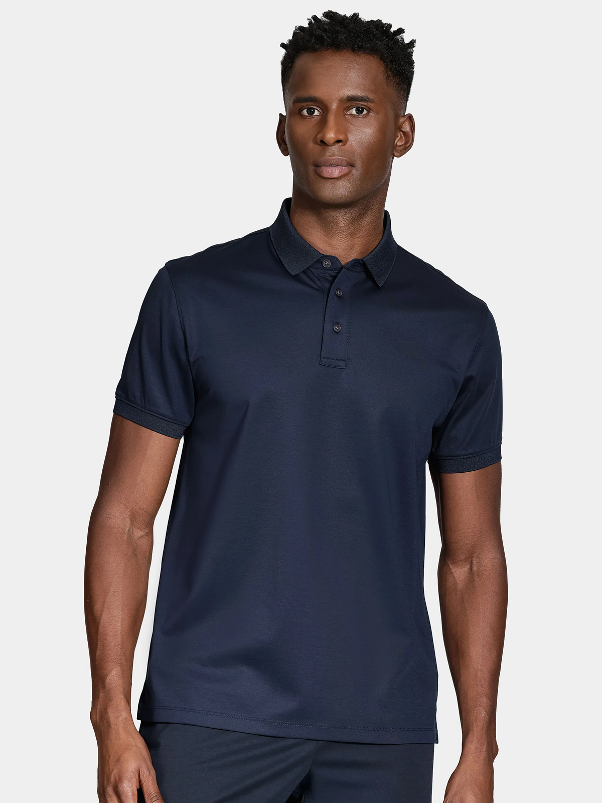 Polo masculina confeccionada em algodão australiano com poliéster, em trama interlock premium e processo exclusivo de dupla mercerização que intensifica o brilho natural e proporciona maciez excepcional ao toque. O tecido oferece resistência superior, excelente durabilidade e caimento impecável, elevando o padrão de qualidade da peça.