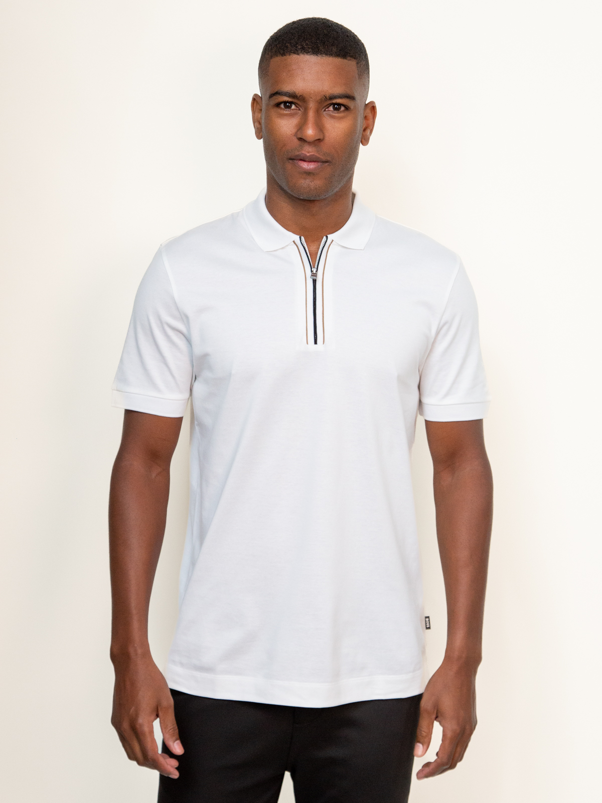Com modelagem regular fit, a polo boss h-paras branca masculina proporciona caimento confortável e elegante. O destaque está na carcela com fecho de correr (zíper) e nas riscas de assinatura, que adicionam um visual contemporâneo e diferenciado. Ideal para composições casuais sofisticadas com personalidade.