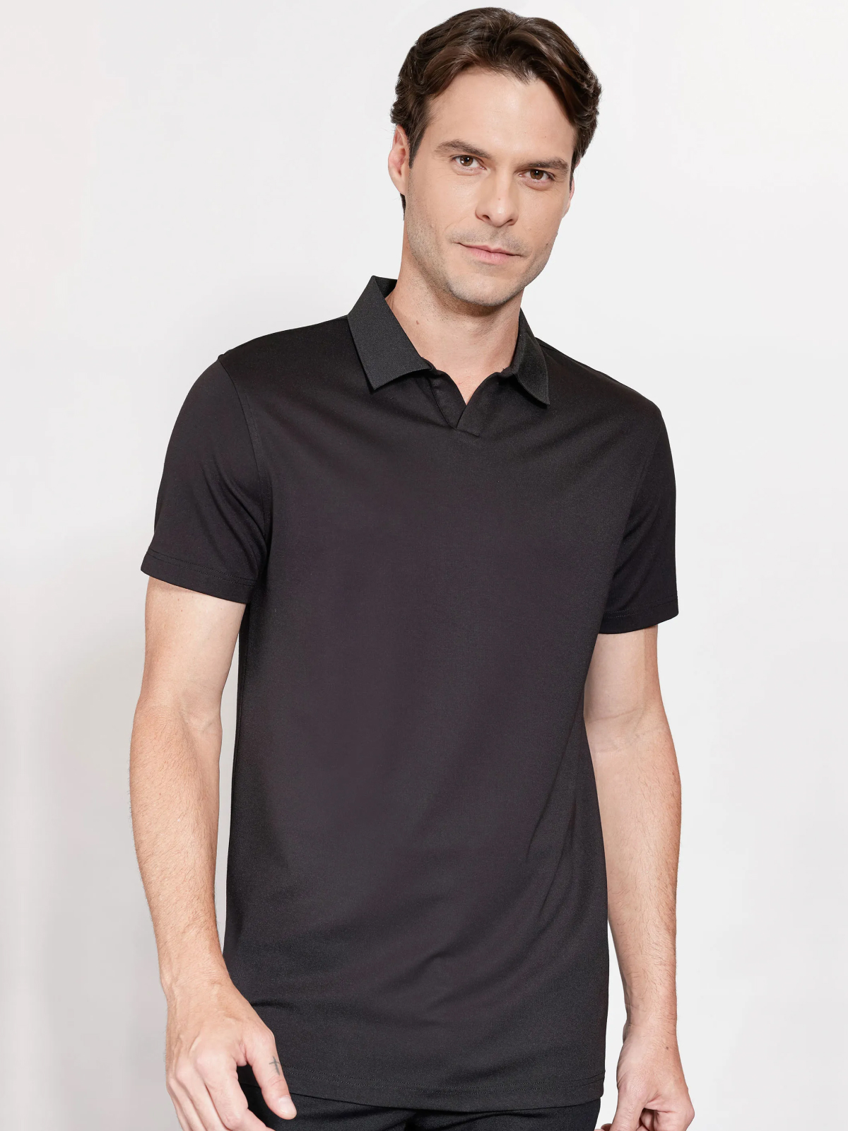 A modelagem moderna com design clean e atemporal torna essa polo extremamente versátil, ideal para composições casuais ou produções mais alinhadas. A cor preta reforça a elegância e facilidade de combinação. Produto original e padrão premium Casa das Camisas.