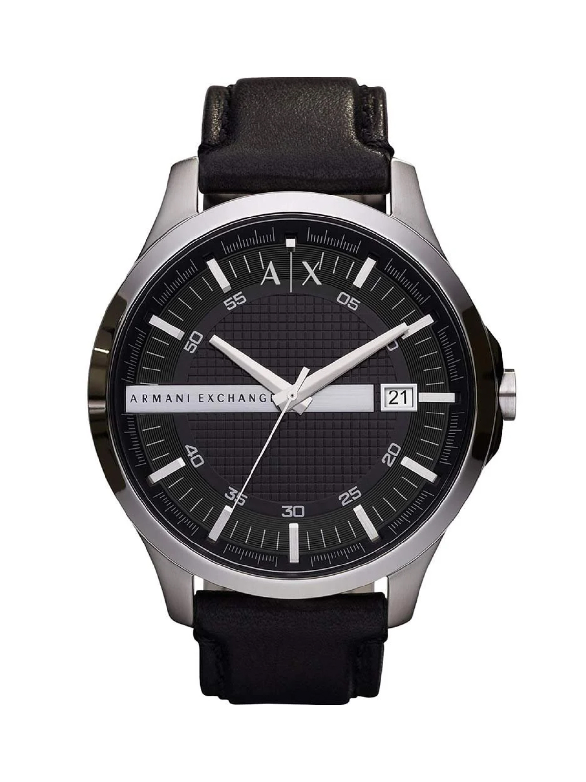 O Relógio Armani Exchange Quartz combina caixa em aço inoxidável prateado com pulseira em couro legítimo preto, proporcionando elegância e presença marcante no pulso. Possui mostrador preto texturizado, movimento quartzo analógico de alta precisão e vidro em cristal mineral.