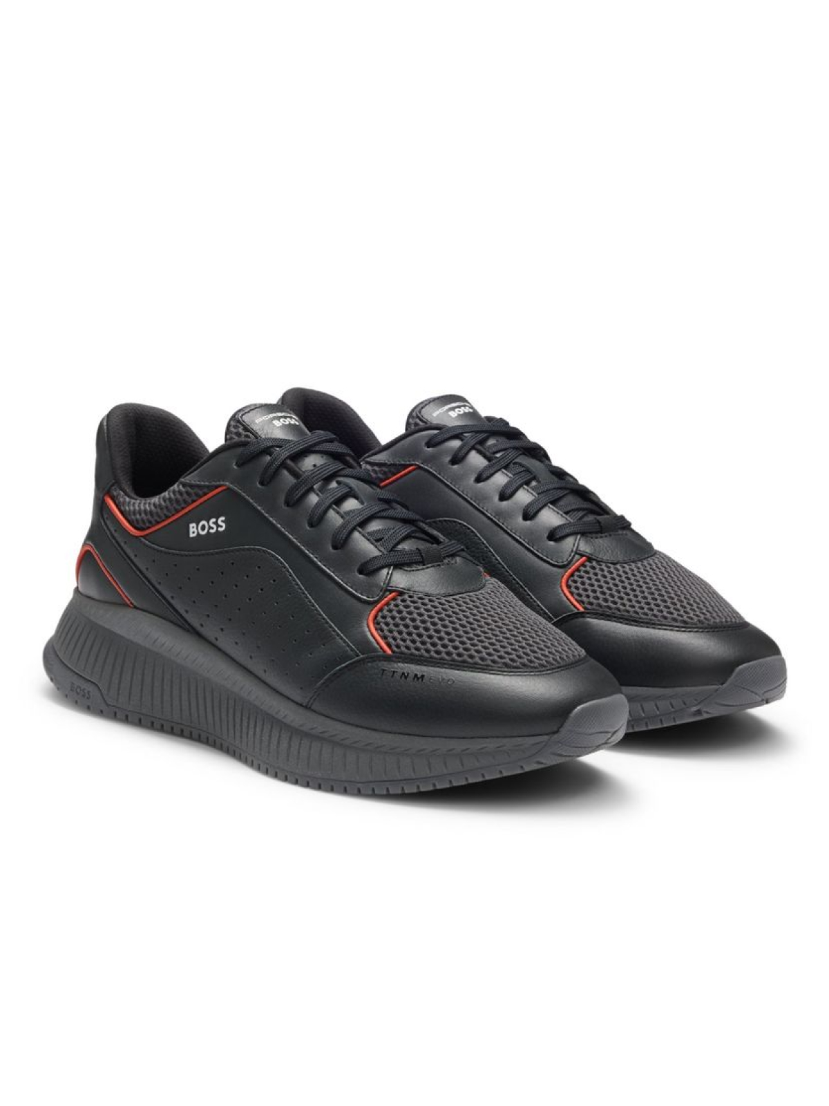 Tênis masculino da collab Porsche x BOSS confeccionado em couro legítimo preto, com detalhes esportivos e acabamento sofisticado. O modelo combina design moderno com solado em borracha, garantindo conforto, estabilidade e performance no uso diário.