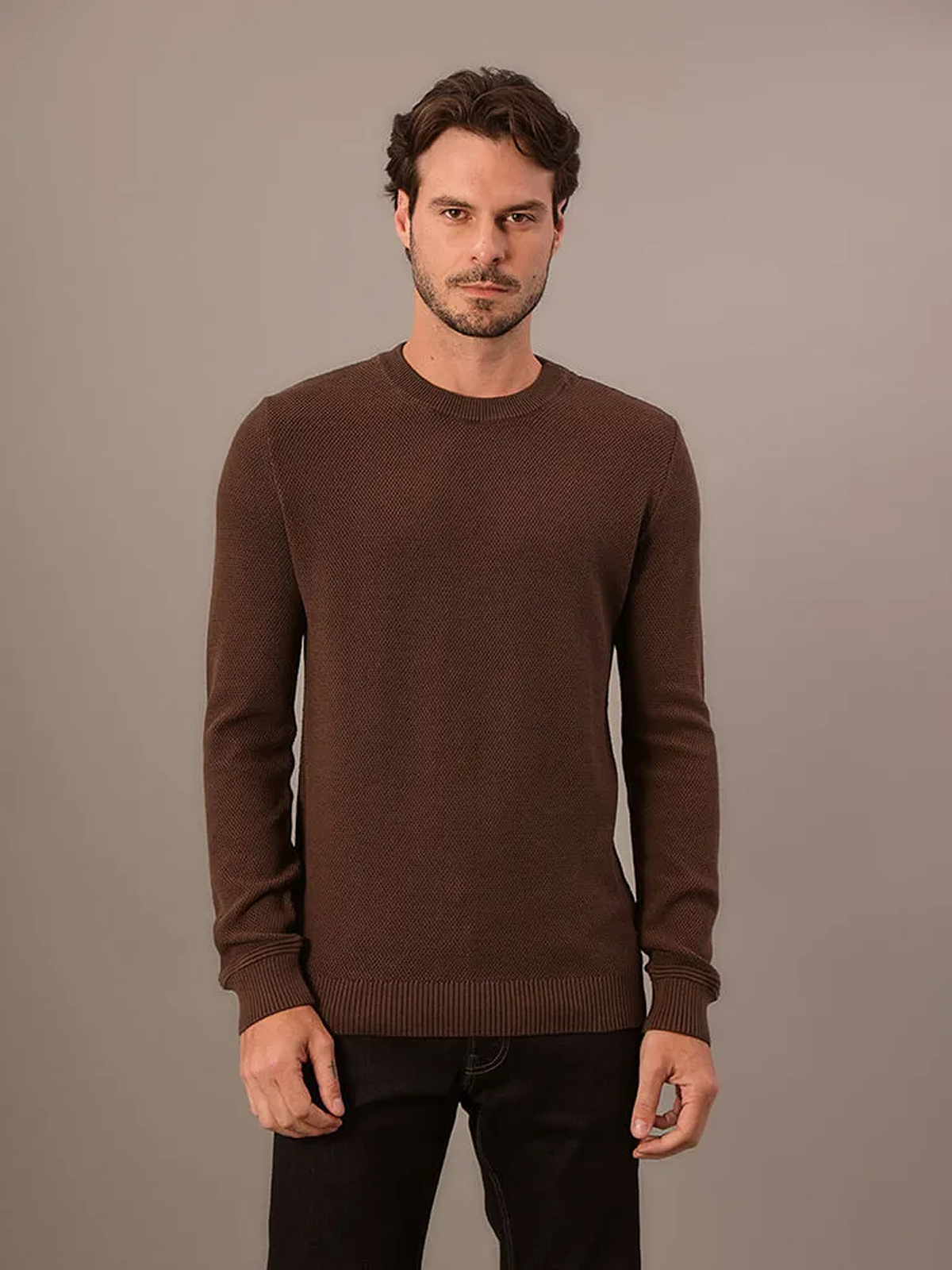 O suéter calvin klein marrom masculino é a escolha ideal para quem busca elegância, conforto e sofisticação no dia a dia. Confeccionado em tricot 100% algodão, oferece toque macio, excelente respirabilidade e um caimento impecável, elevando o padrão do suéter masculino premium.